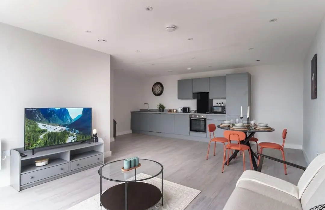 The 93 m² Fantastic 3 Bedroom Manchester Apartment apartment is a great place to stay in Salford with a modern restaurant and bar, within 17 minutes' walk of Granada Studios Event Venue.